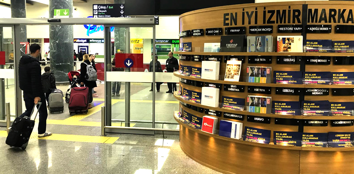 Özer Medya Adnan Menderes Havalimanı EN İYİ MARKALAR ünitemiz bölgede yer alan firmalara maksimum fayda sağlamak amacı ile yolcular şehre ilk giriş yaptıkları anda onları karşılayıp sizlere alışılmışın dışında farklı bir tanıtım desteği sağlıyor..