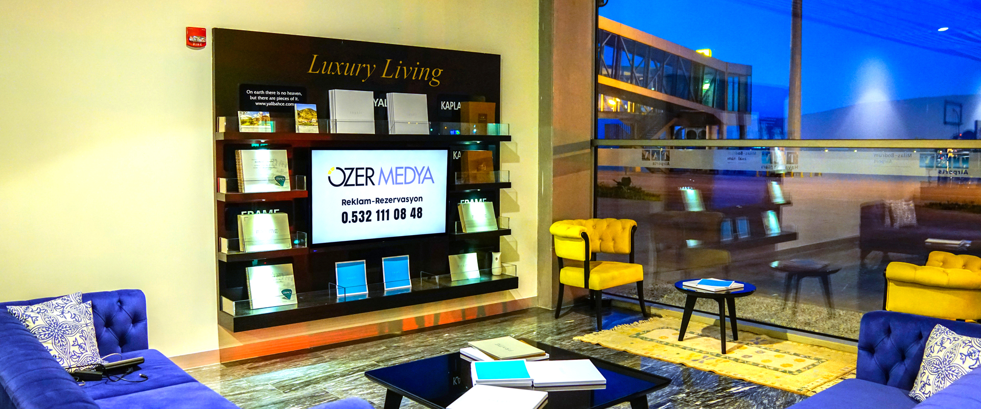 Bodrum Havalimanı GAT Özel Jet TerminaliHepimizin tanıdığı ancak çok az görme fırsatı yakaladığı özel uçak sahibi veya özel uçak kiralayan yolcuların ağırlandıkları Business Class üzeri özel bir yolcu terminalidir. Bu salon yerli, yabancı birçok ünlü ismin ve tanınmış iş adamının bölgeye giriş-çıkış yaptığı en özel noktalarından biridir. Türkiye’nin ve dünyanın en ünlü isimlerine ulaşabileceğiniz bu özel alanda özel jet yolcuları konfor içinde dinlenirken dijital ekranlarımızda sunumunuzu izleyecek, en ince ayrıntılarına kadar markanızı tanıyabilecekler.