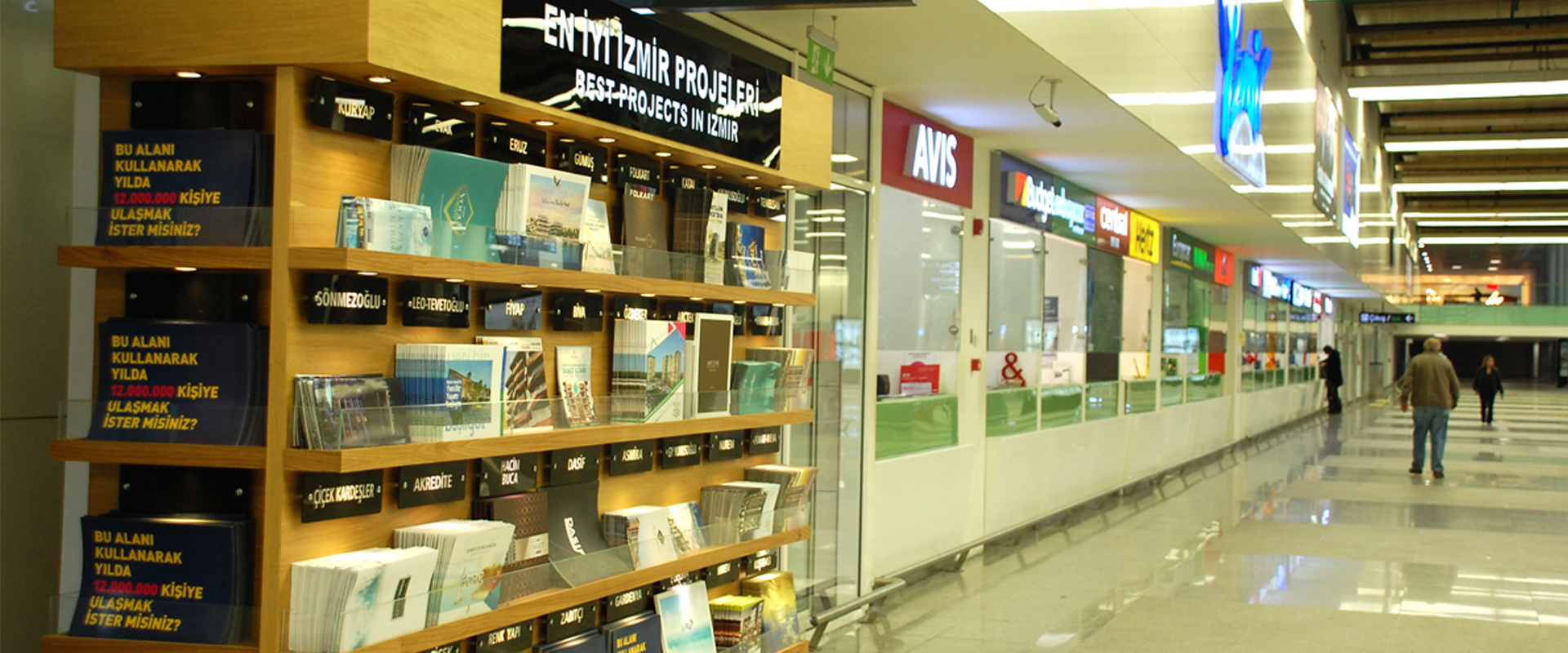 Biz havalimanı yolu ile şehre yeni gelen yolcuları doğrudan kendi onayları ile size yönlendiriyoruz. Bulunduğumuz bölgedeki havalimanlarında şehrin yerel firmalarını öne çıkaran projelerin sunuyoruz. İzmir'de artan göç talebi sebebi ile inşaat sektörü için “En iyi İzmir Projeleri” Tanıtım Ünitesini hazırladık. İzmir’de yatırım yapmak isteyen herkesi mecburi çıkış kapısında bulunan Tanıtım Ünitemiz ve stand görevlimiz ile sizlere yönlendirmektir. Biz sizin bulunduğunuz lokasyonda konut arayan kişileri onlar henüz şehre adım attıkları anda haberdar eden iş ortağınız olarak çalışıyor, direk satın alma odaklı yeni müşterileri size yönlendirmeye çalışıyoruz. Dilerseniz günlük ve haftalık olarak kaç yolcuya kataloglarınızın verildiğini, toplam kaç kişinin bölgede yatırım düşündüğünü sizlere iletişim bilgileri ile birlikte raporluyoruz. Bu raporlamadaki verilerimiz. bölgede yatırım yapmak isteyen kişilere doğrudan ulaşmanızı sağlayan çok önemli dataları oluşturmaktadır.